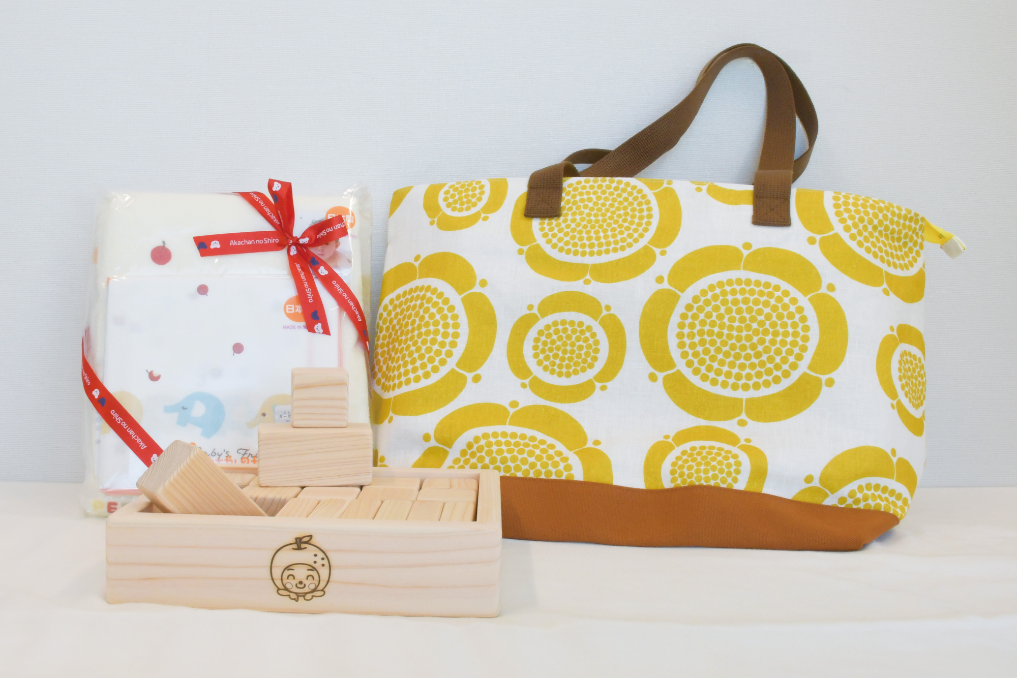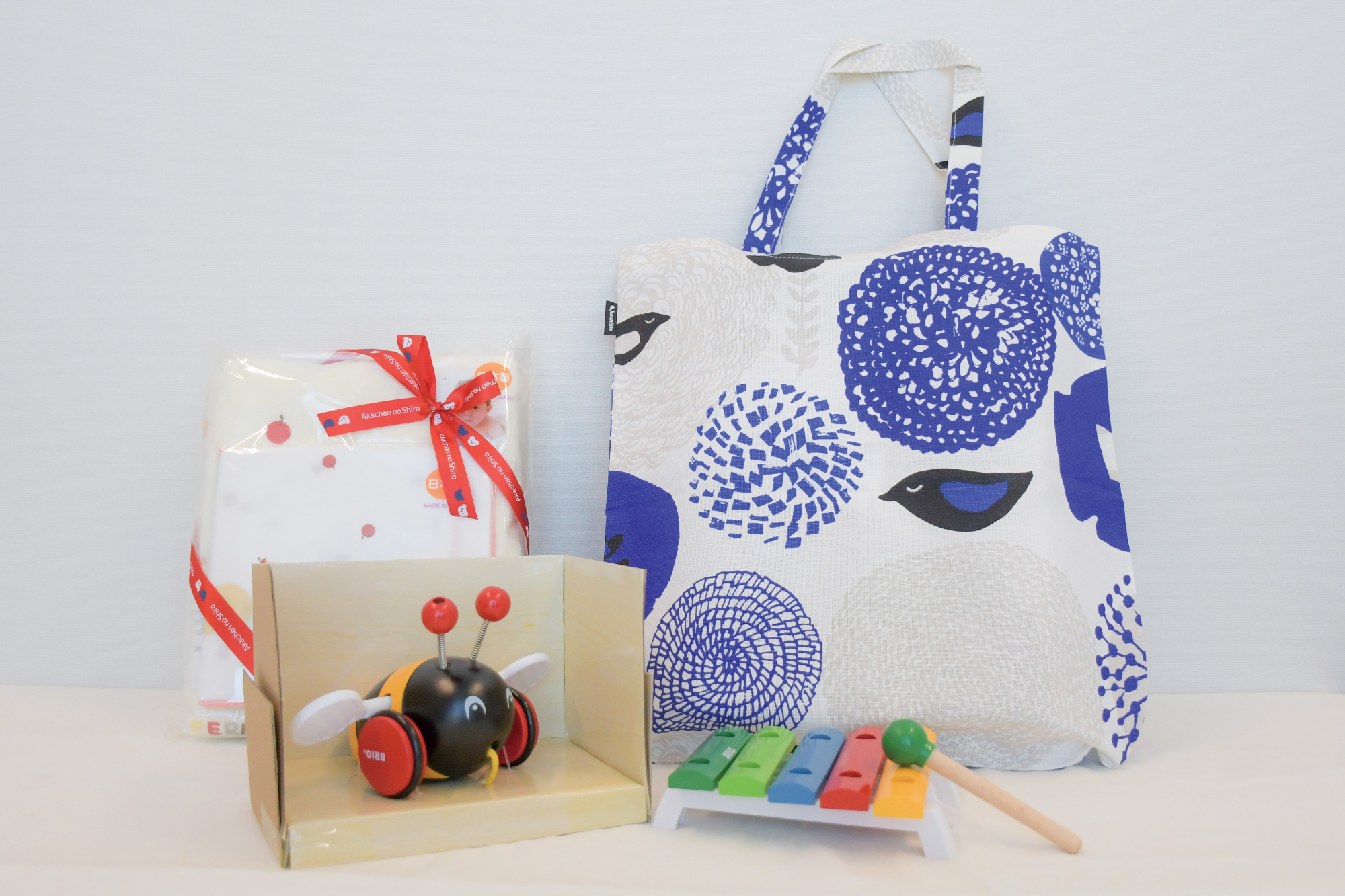 こどもの誕生を祝福し、健やかな成長を応援するために育児パッケージをプレゼントしています。第一子では、フィンランド製のKuovi(クオヴィ)のマザーズバッグや神川産ひのきの積み木などのセット。第二子では、フィンランド製のKAUNISTE(カウニステ)のトートバッグとおもちゃなどのセットをそれぞれプレゼントしています。