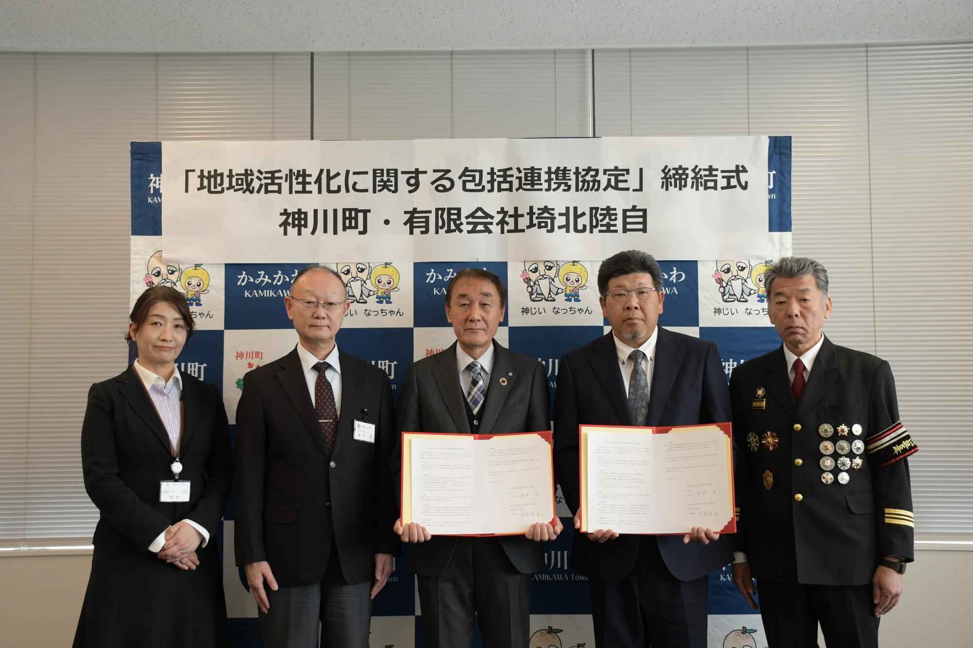 この協定は、神川町と有限会社埼北陸自が相互に連携及び協力した取組を通じて、各々の資源の相互活用と人的交流を行い、人材の育成を図り、豊かな地域社会の形成・発展することを目的としています。